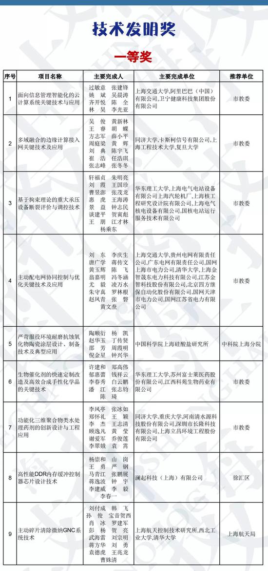 授予30项成果上海市技术发明奖,其中一等奖9项、二等奖12项、三等奖9项;