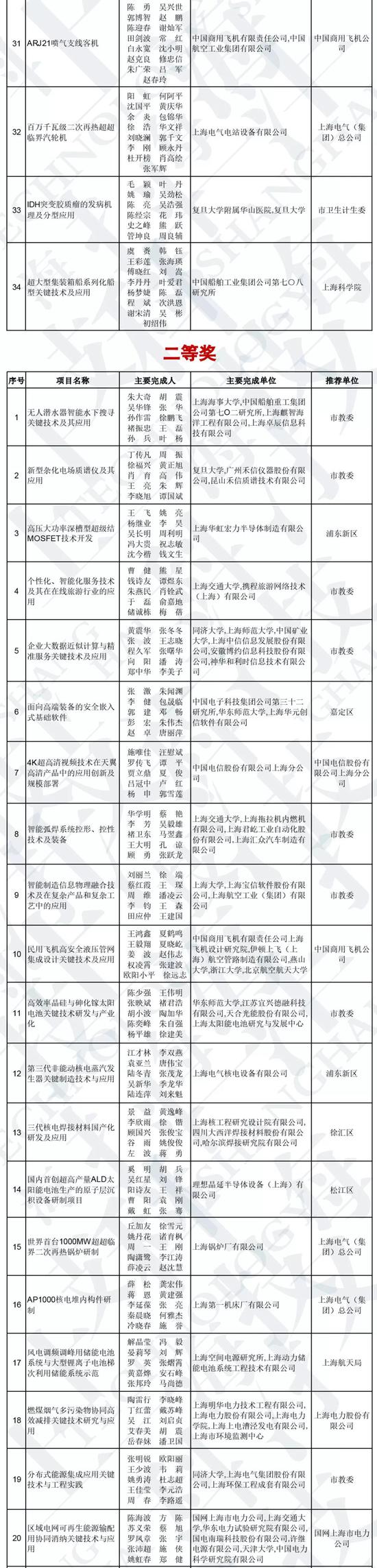 授予231项成果上海市科技进步奖,其中特等奖2项、一等奖34项、二等奖78项、三等奖117项。